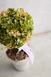 長野県産のアナベルをドライにして、シックな単色のトピアリーに仕立てました。