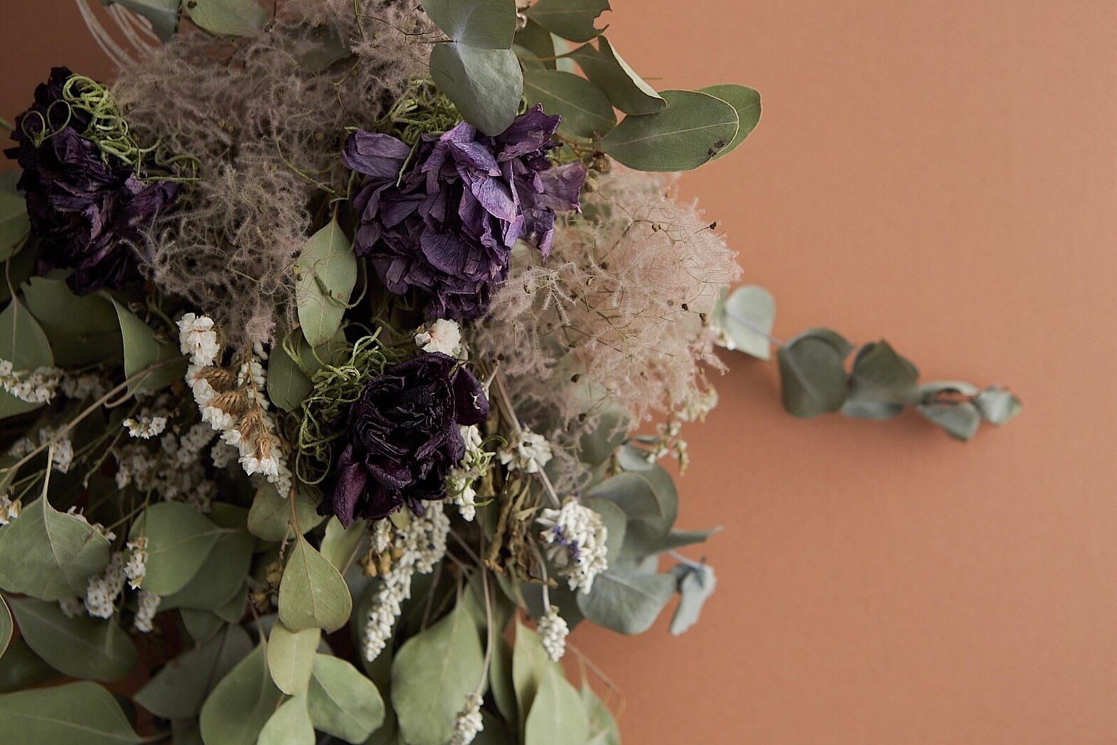 ラナンキュラス、スモークツリー、スターチス、ユーカリ、実付きユーカリ、スターリン、モス、リボン、