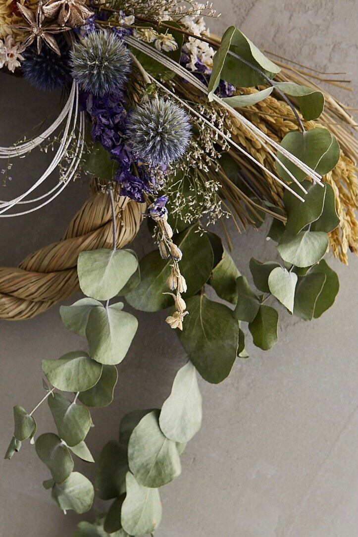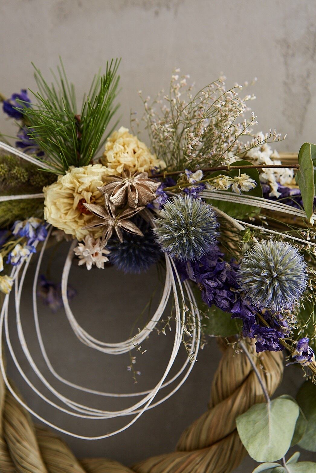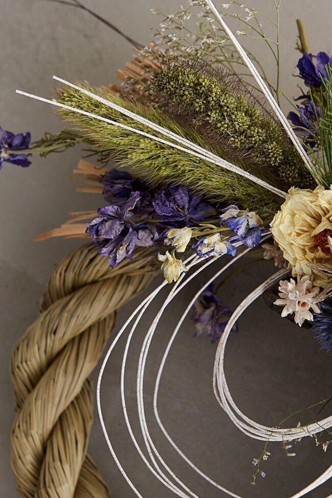 ドライフラワーをあしらったお正月用玄関飾りです。