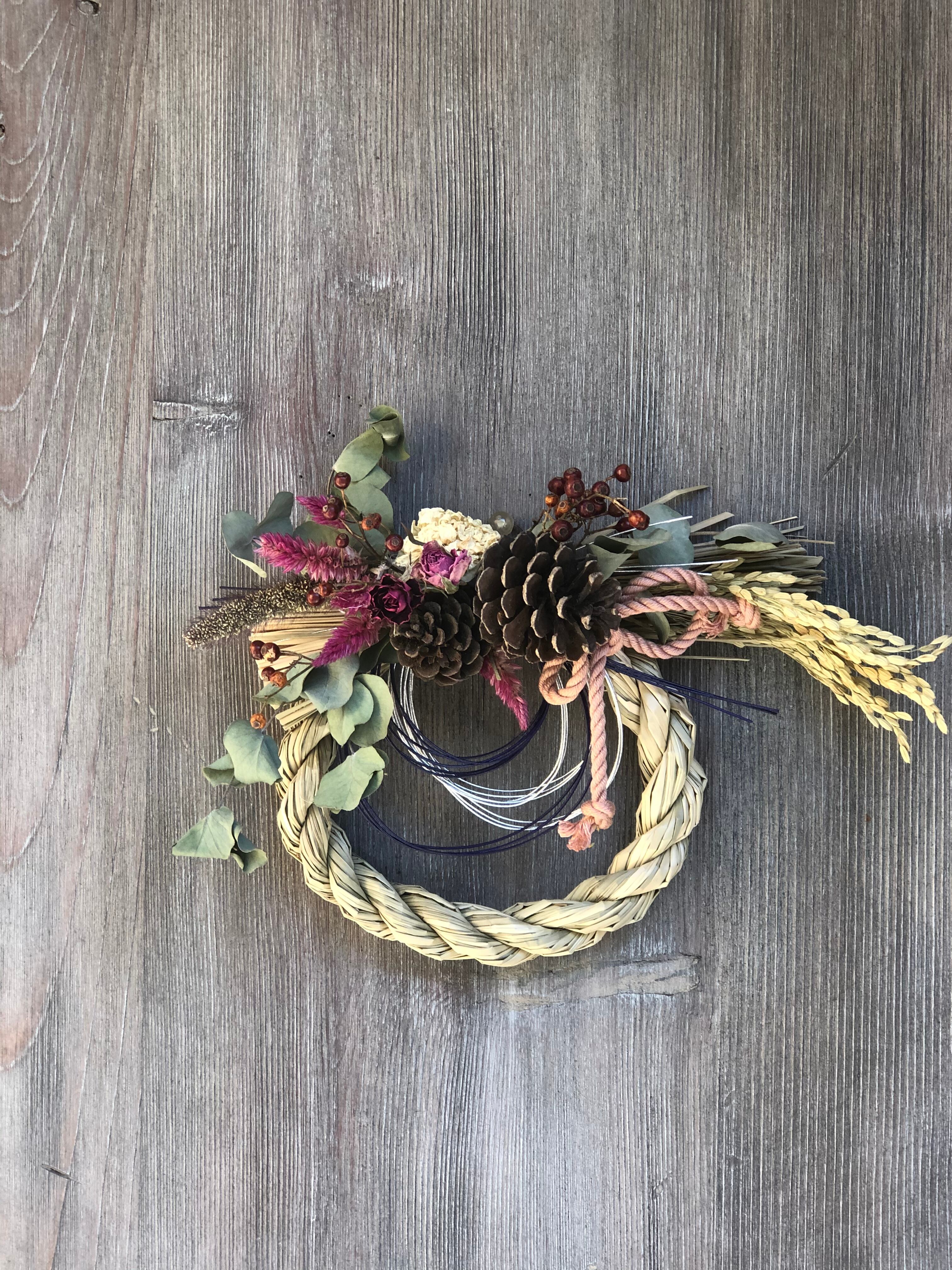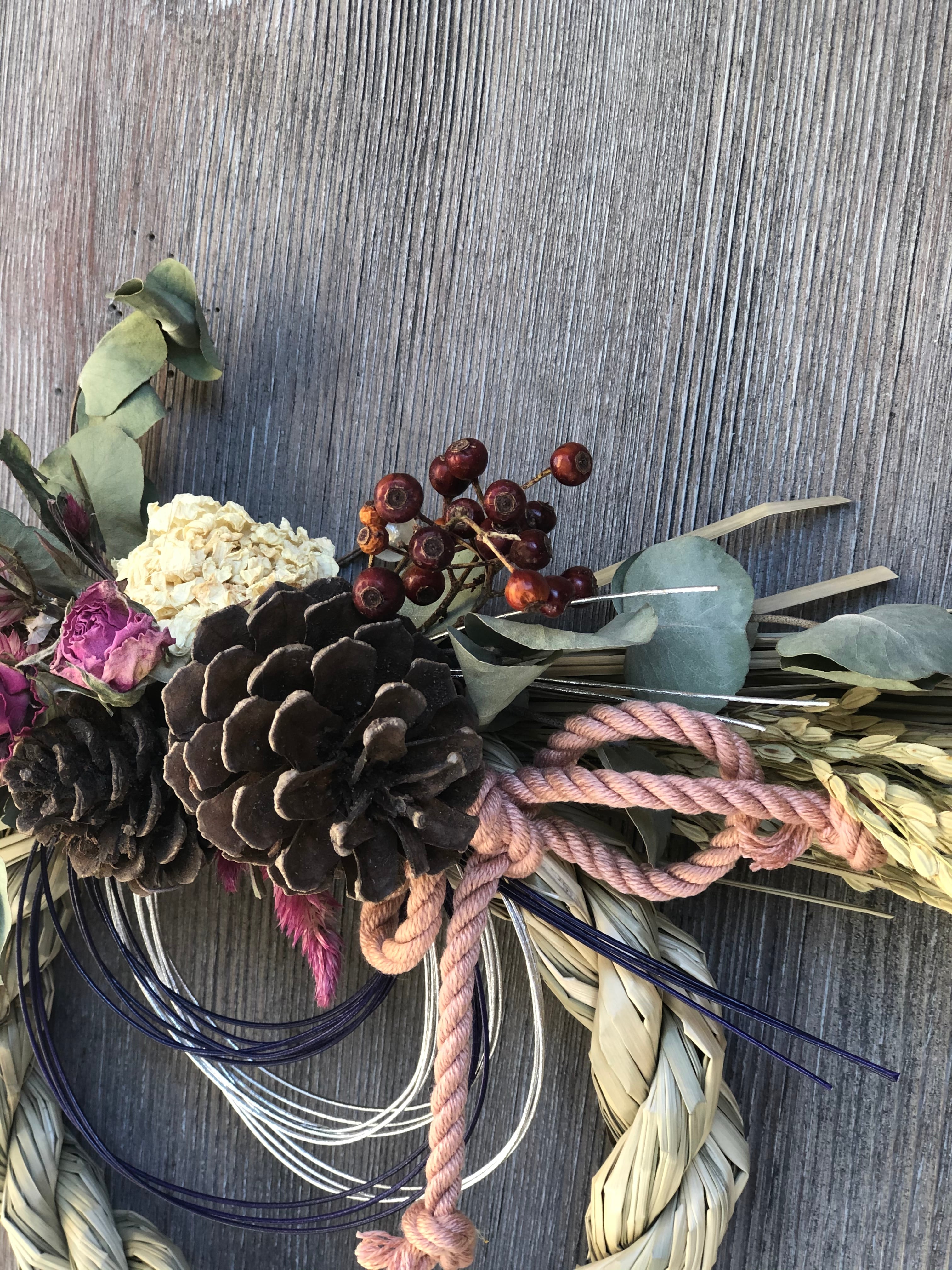 ドライフラワーをあしらったお正月用玄関飾りです。