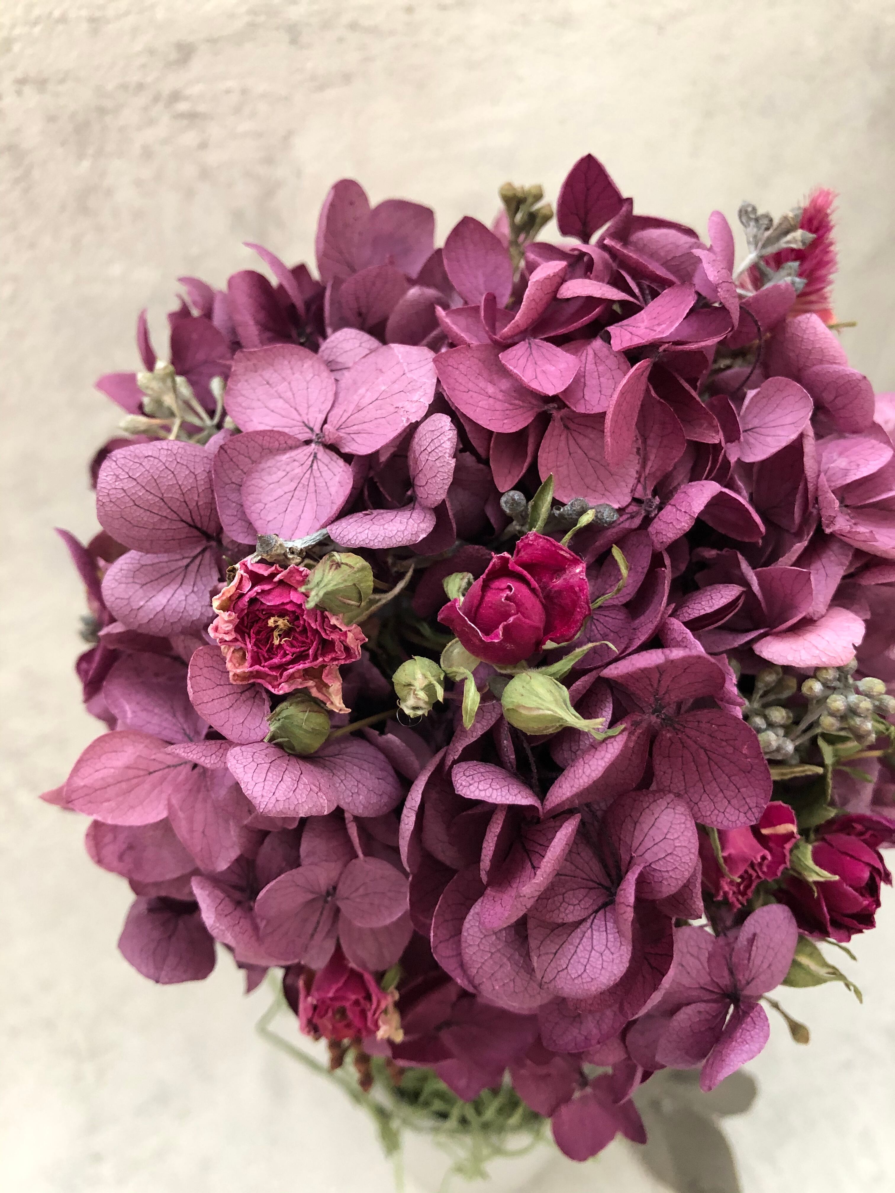 紫陽花(プリザーブドフラワー)ミニ薔薇(ドライフラワー)