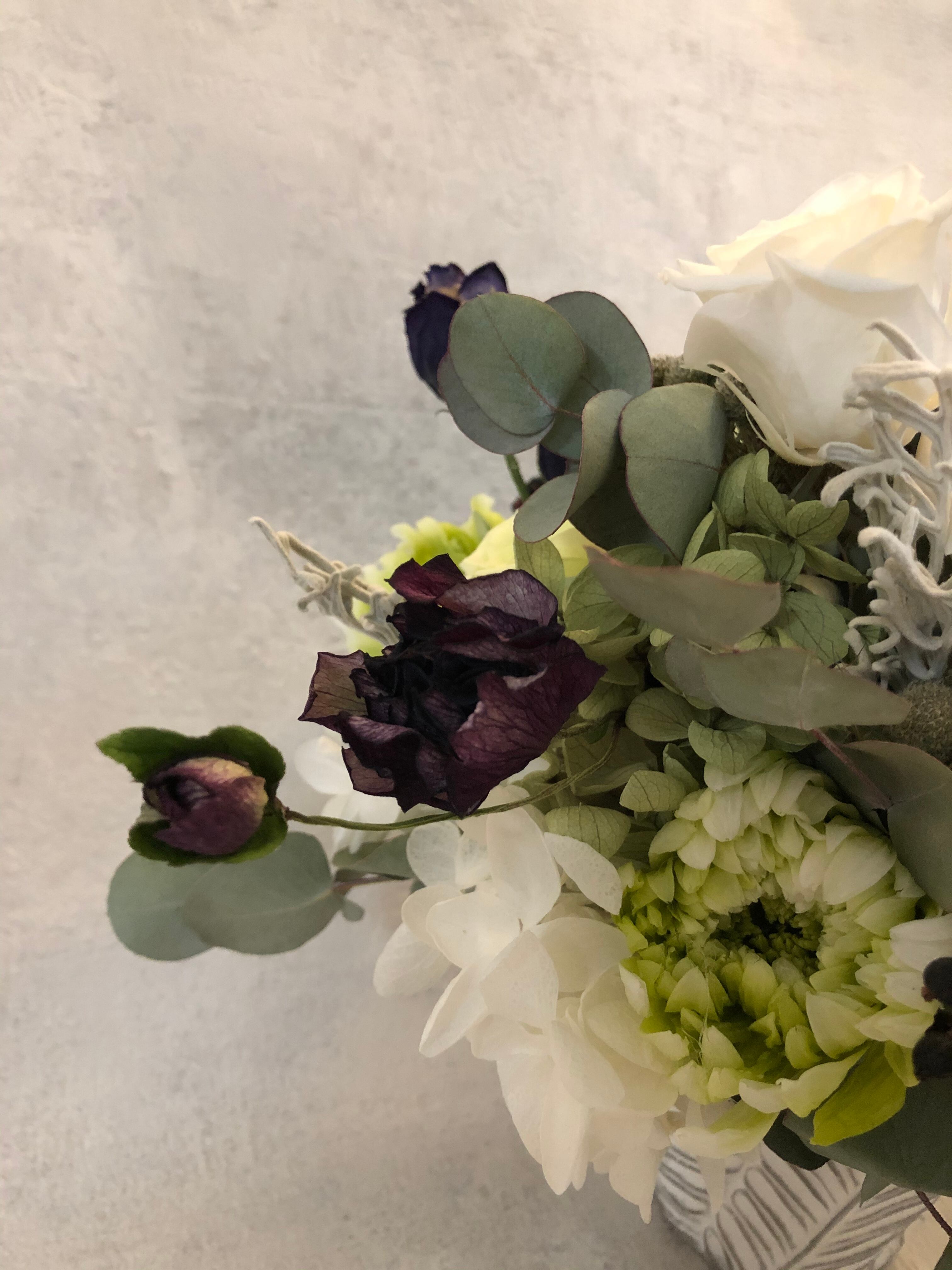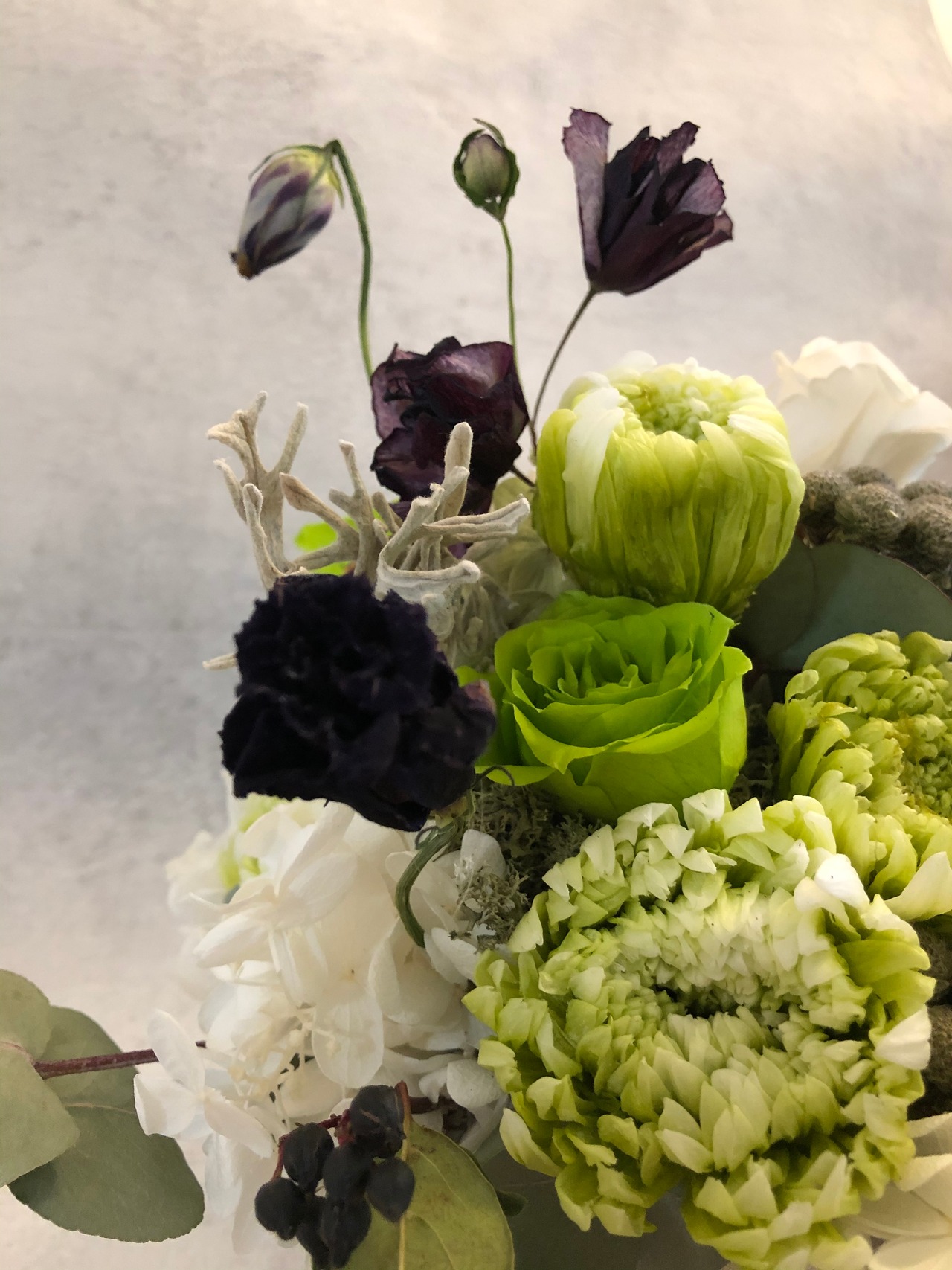 ご希望のご予算、お色目、素材(プリザーブドフラワー、ドライフラワー、アートフラワー等、または上記組み合わせ)でお作り致します。