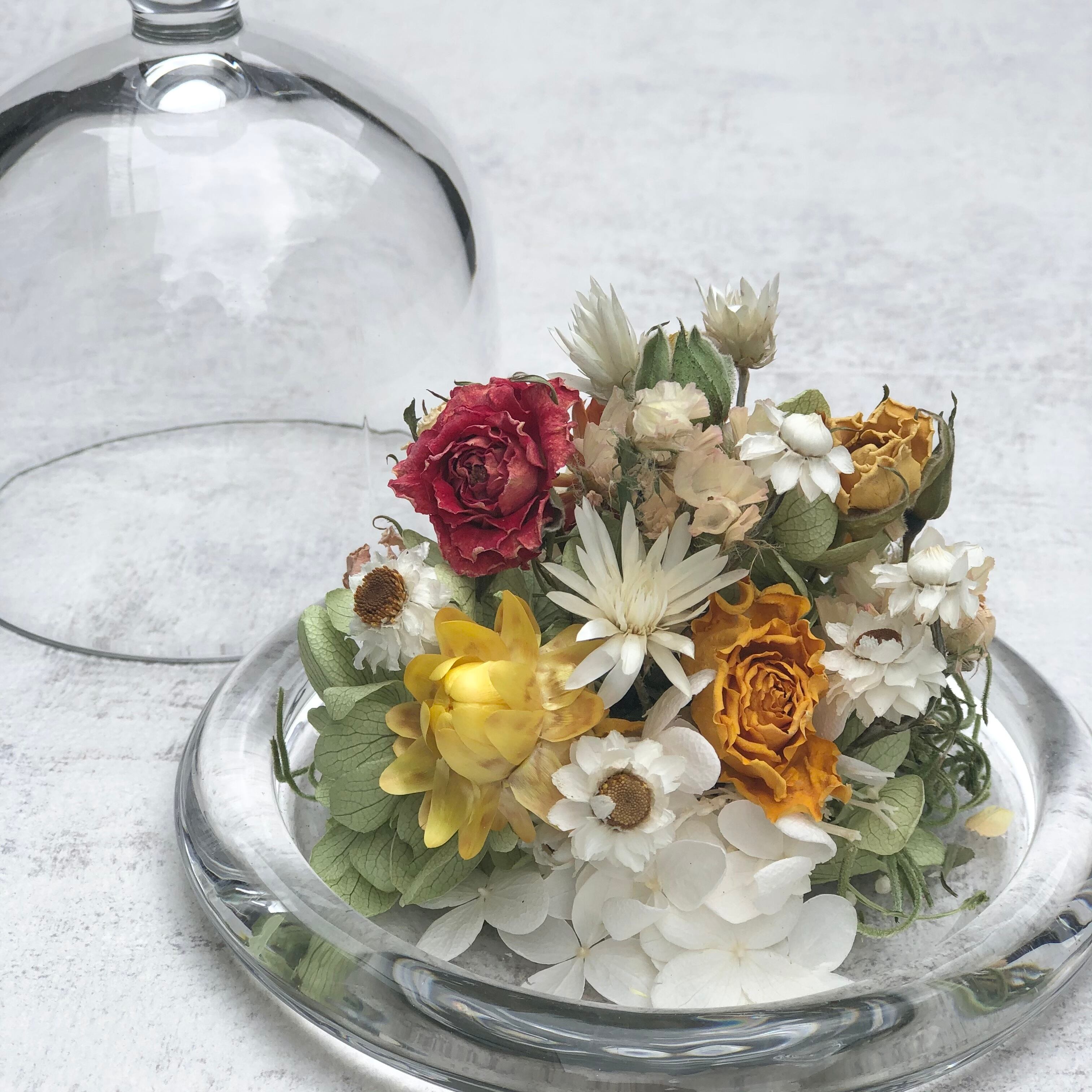 リアンの定番、小花のガラスドームです。