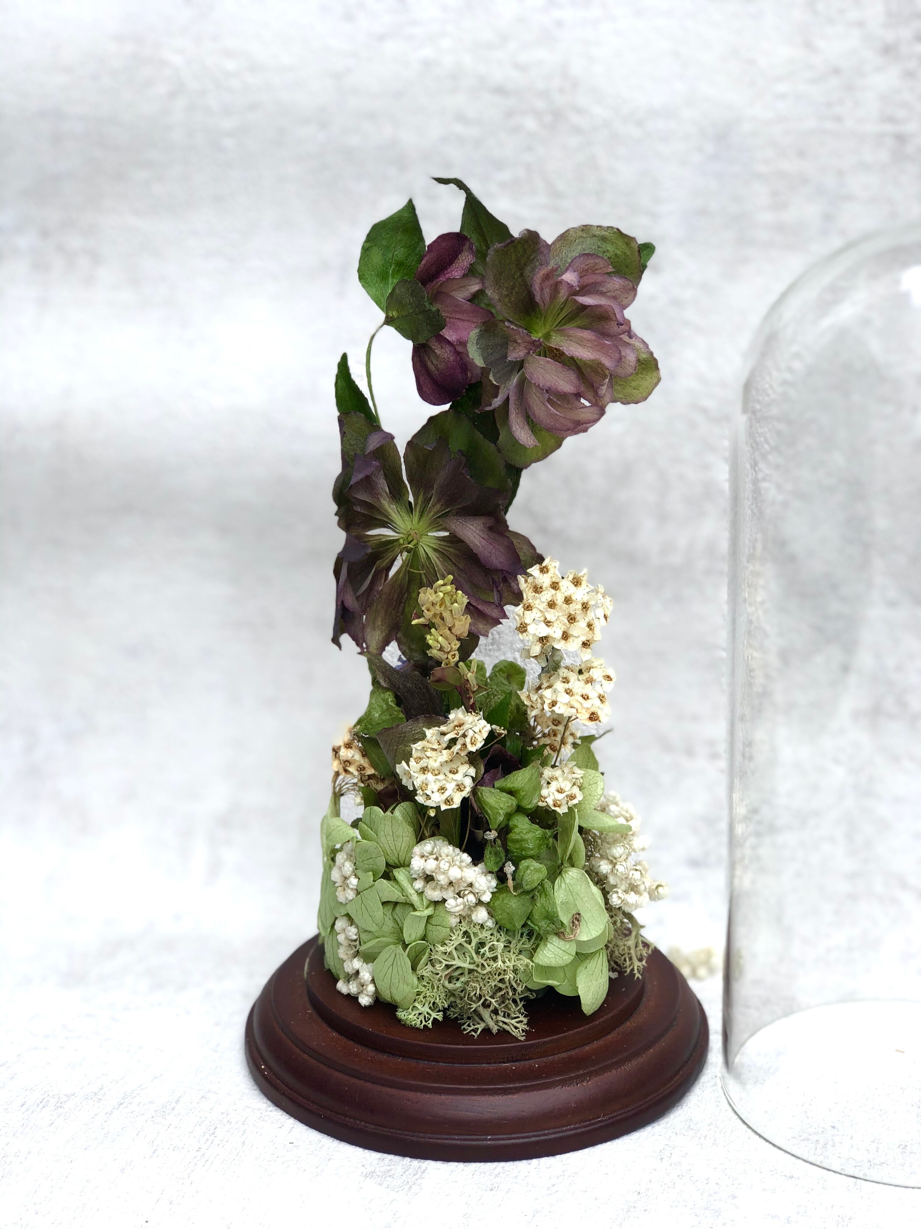 ガラスドームのお供え花(ドライフラワー・春の花)