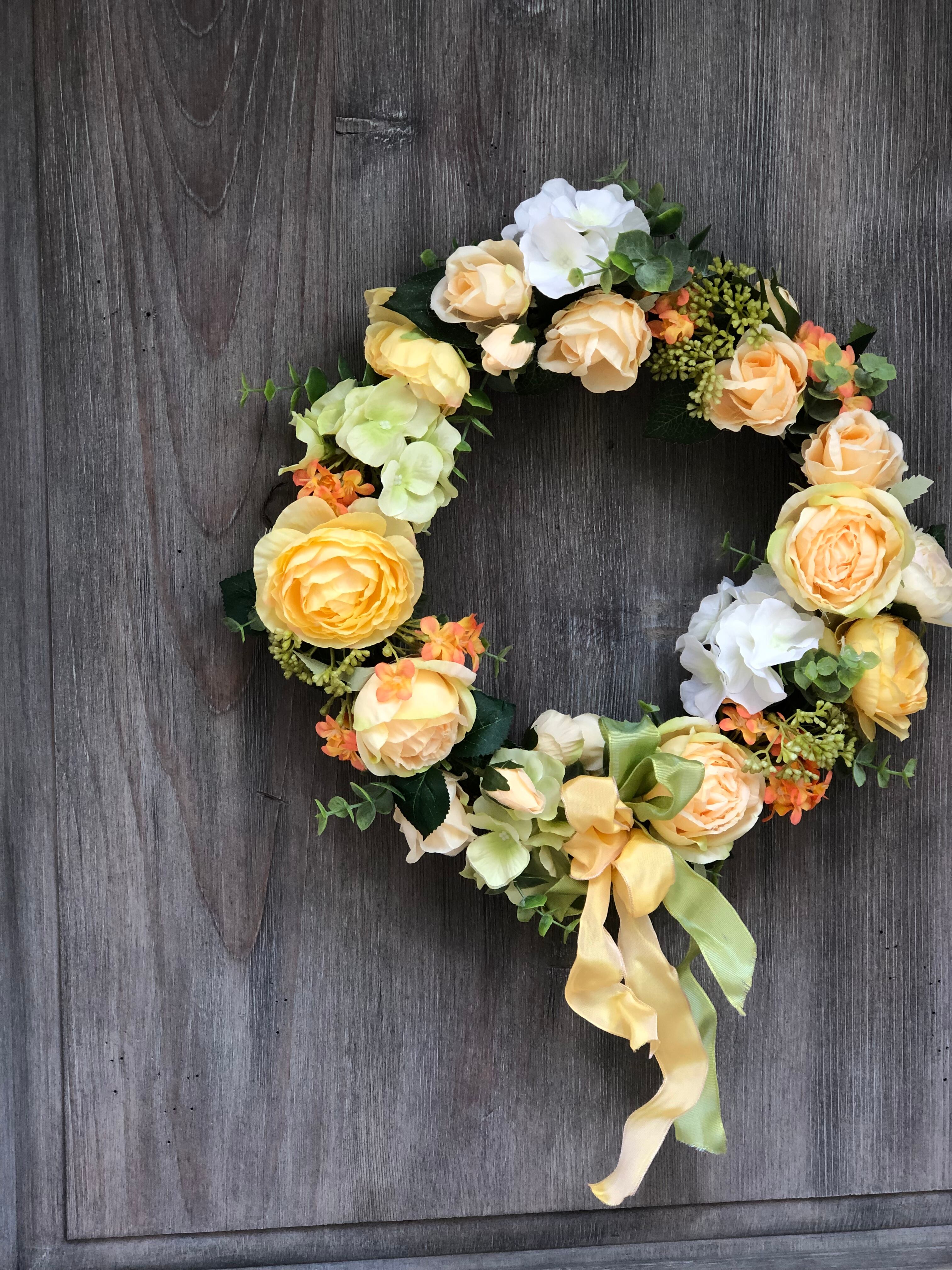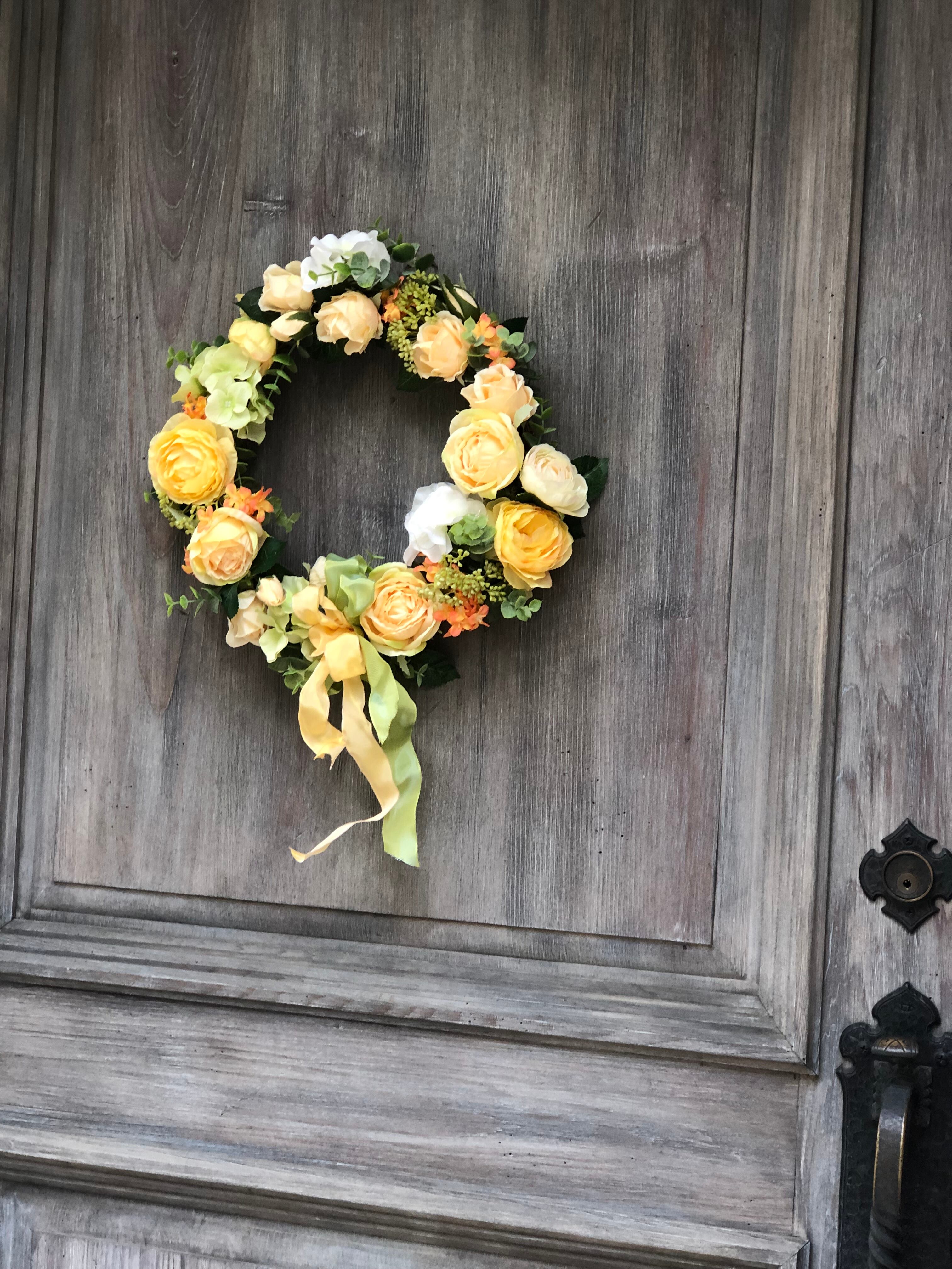 梅雨どきにもお手入れ要らずで安心なアートフラワーの薔薇をふんだんに使ったリースです。