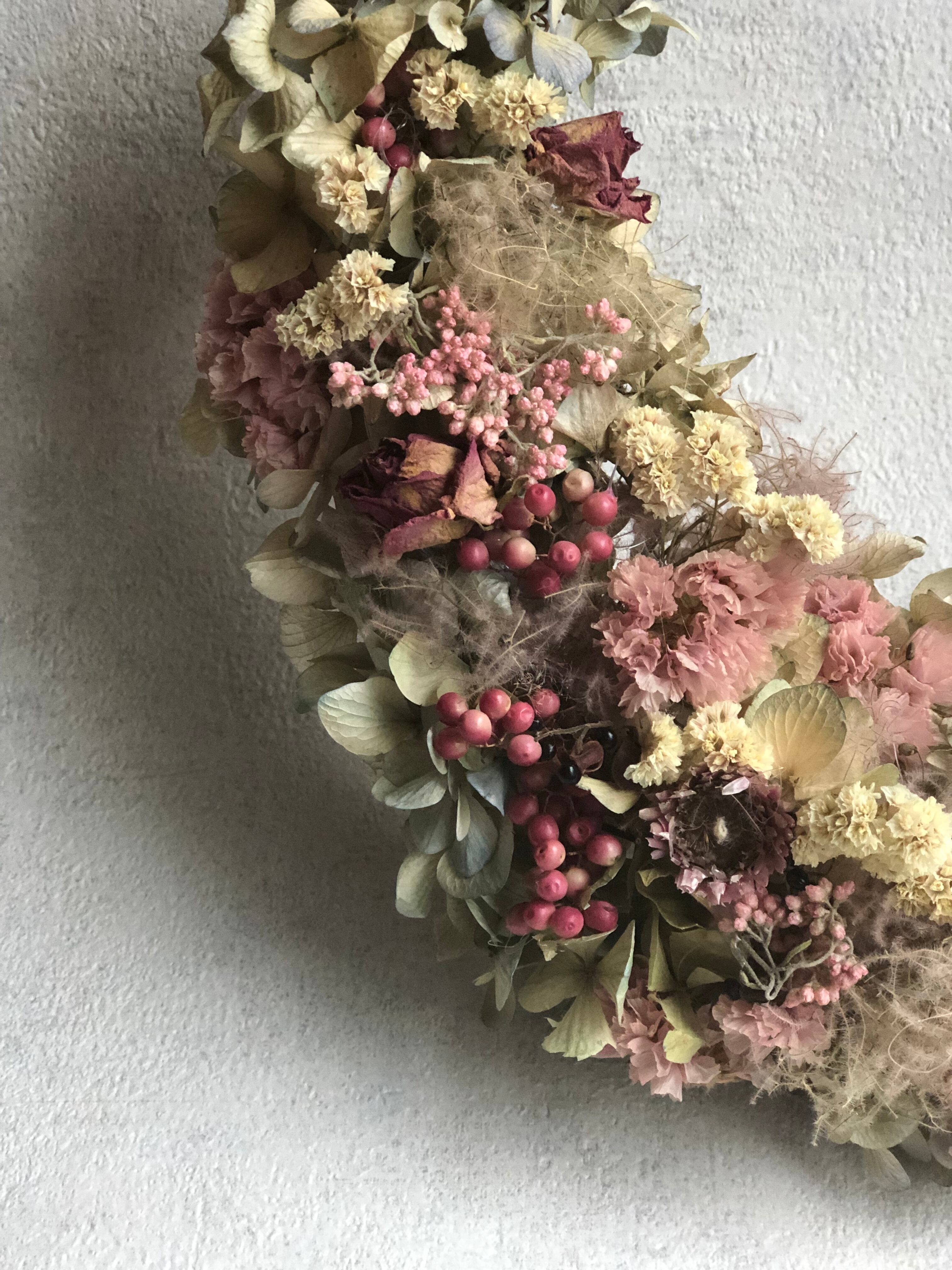 紫陽花、千日紅、ライスフラワー、ペッパーベリー