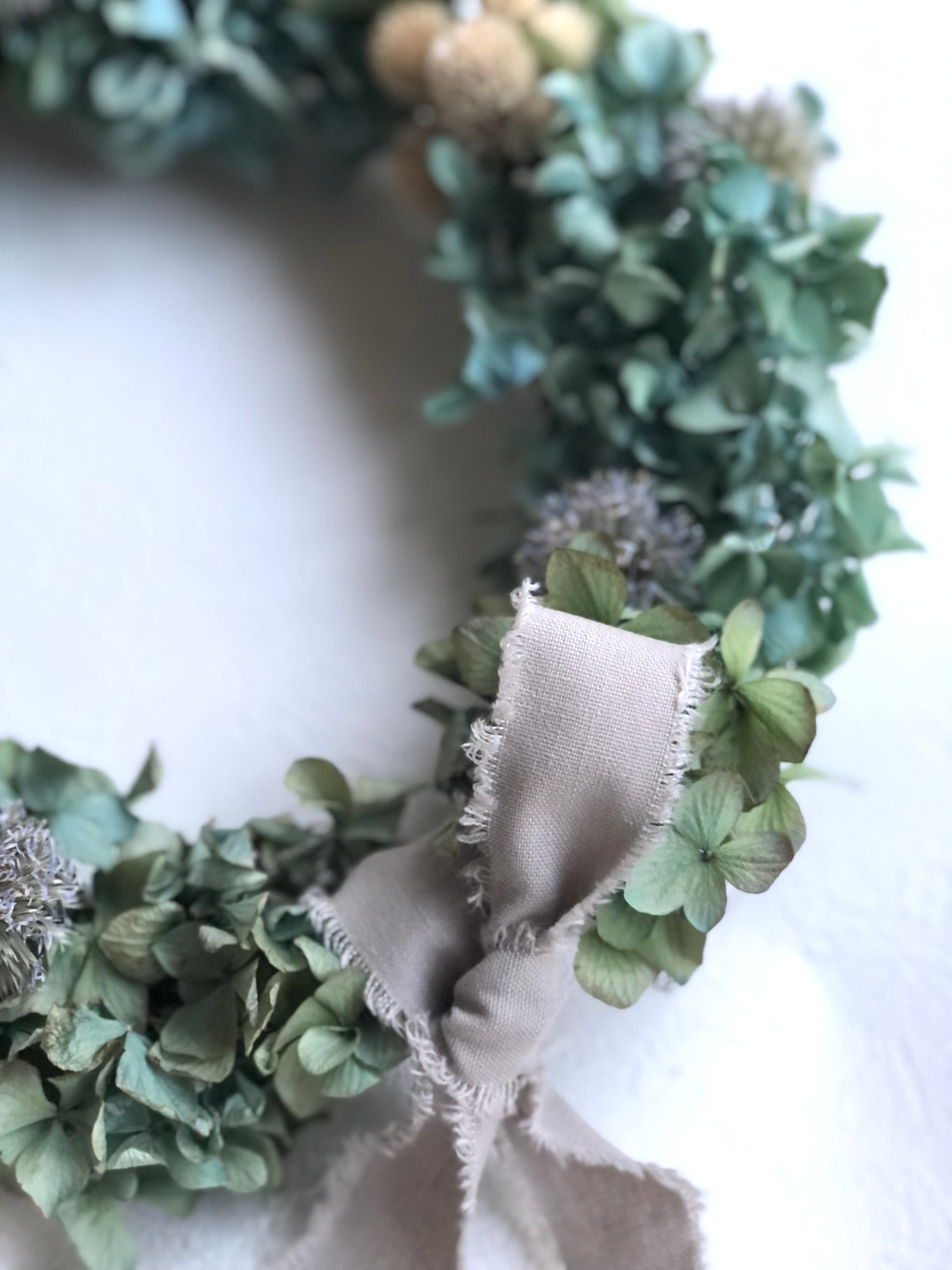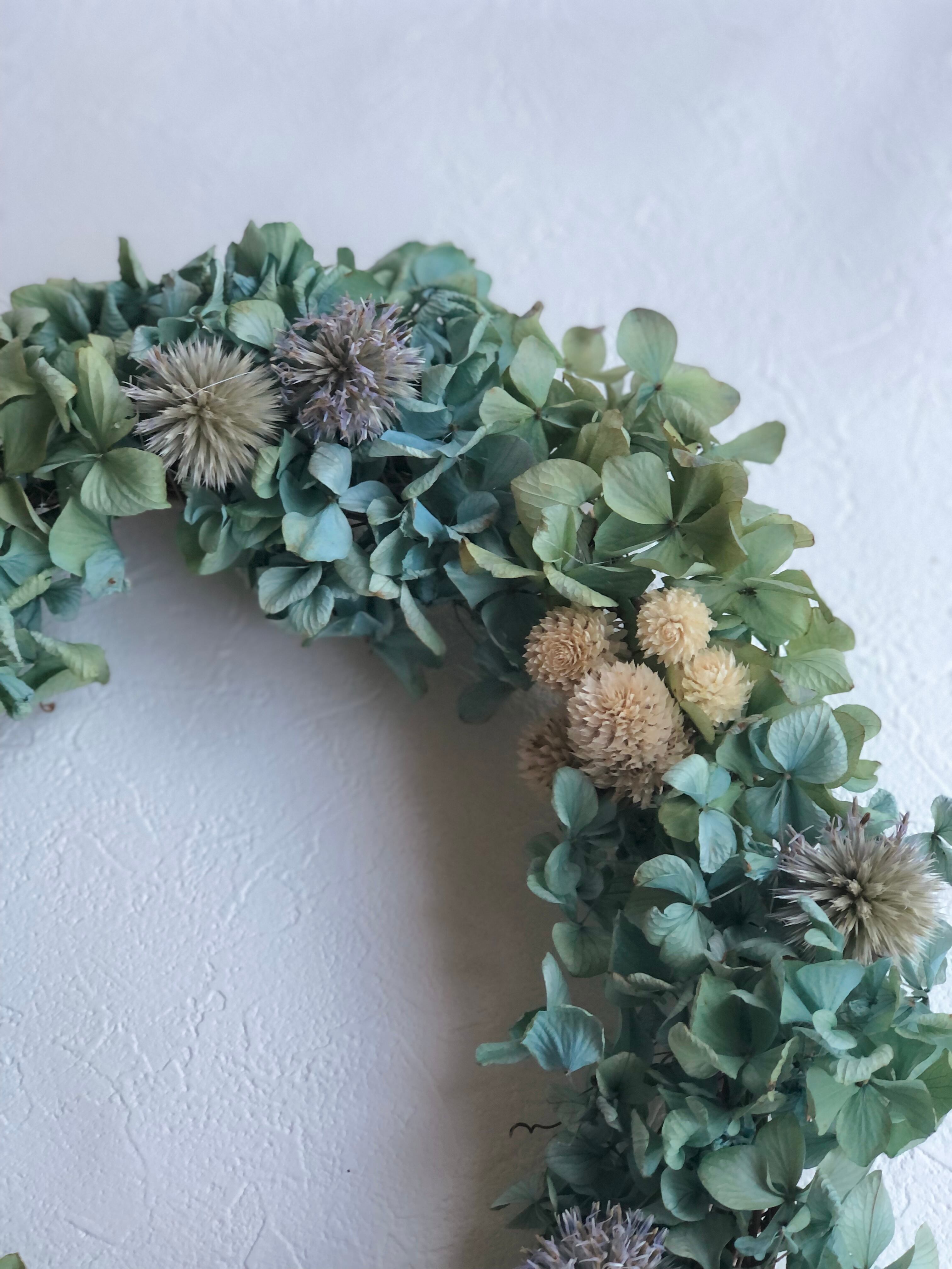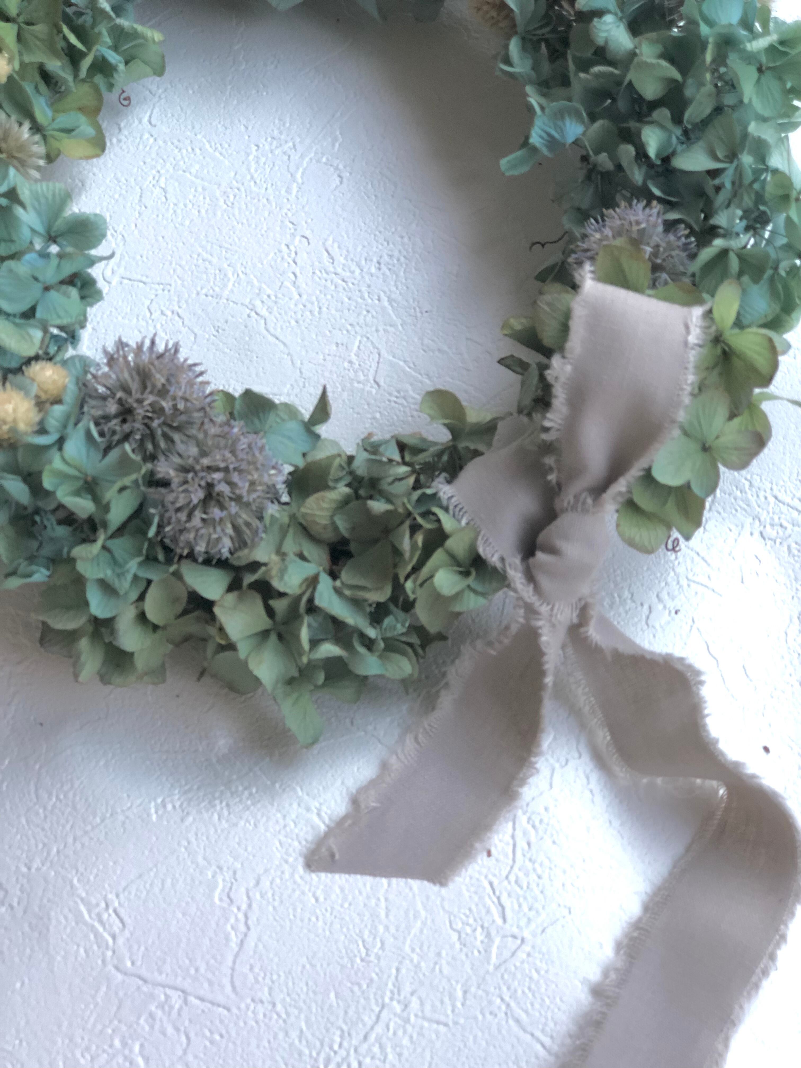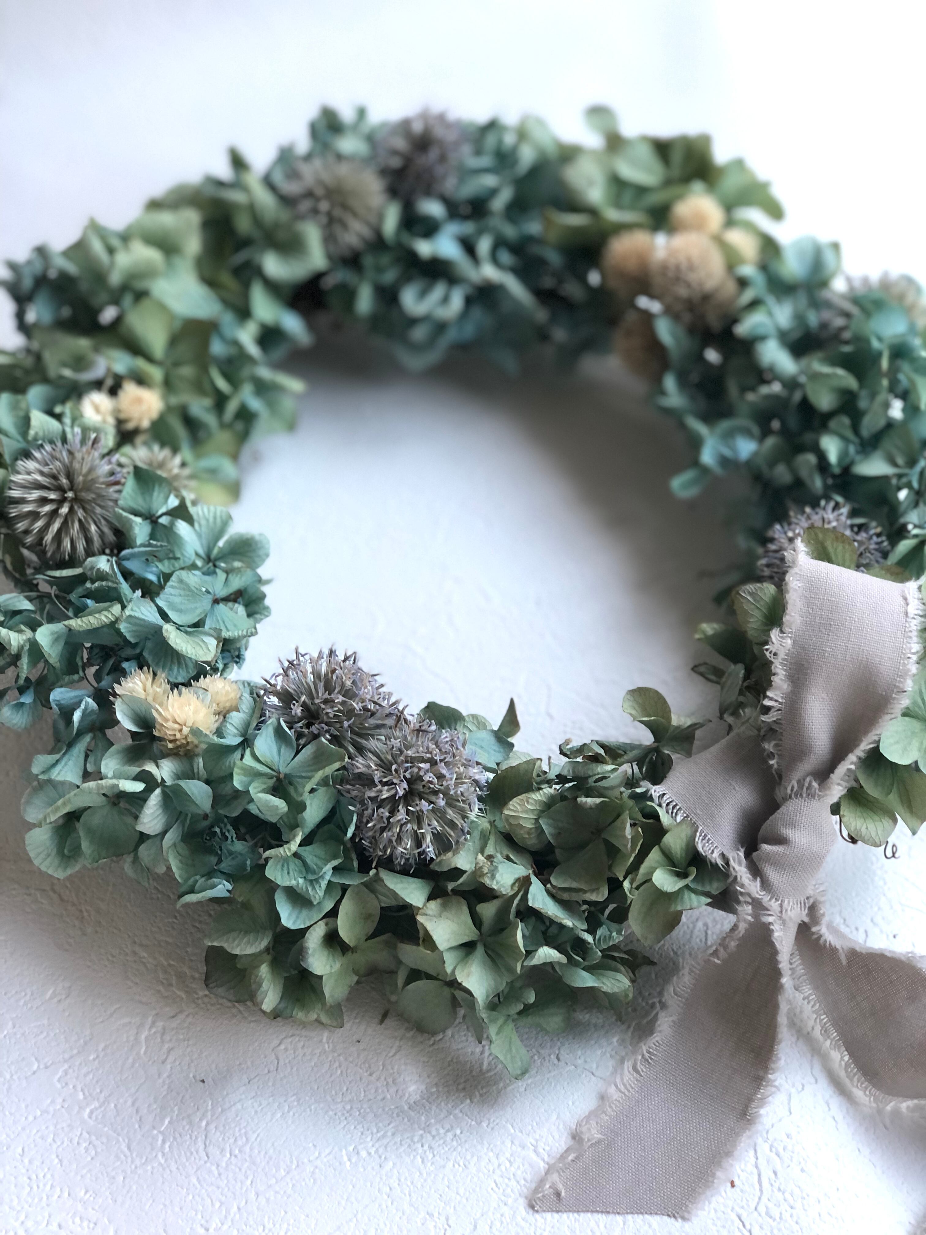 素材を活かしてシンプルなオーバルリースに仕立てました。どんなインテリアにも合いそうです♡